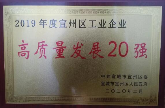 2019年度宣州區(qū)工業(yè)企業(yè)“高質(zhì)量發(fā)展20強(qiáng)”